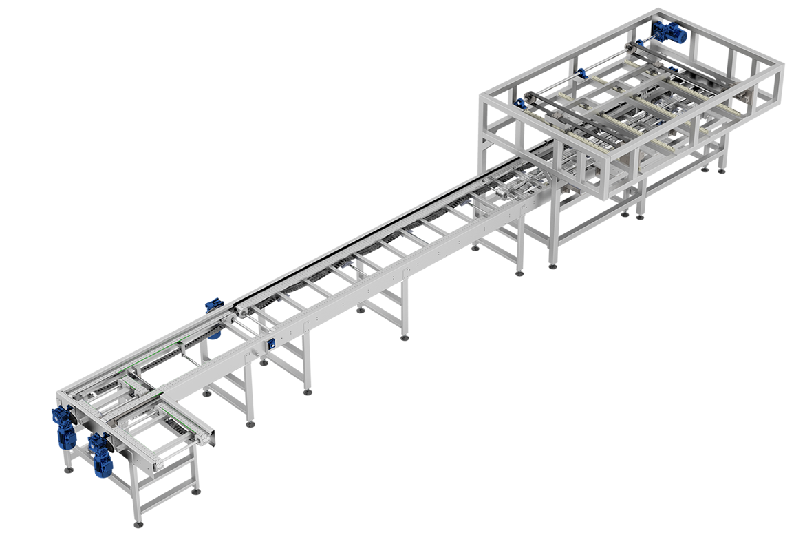 - Depozitörde dolumu yapılan kek tavalarının düzenlenerek fırın bandına otomatik beslemesi burada gerçekleşir.